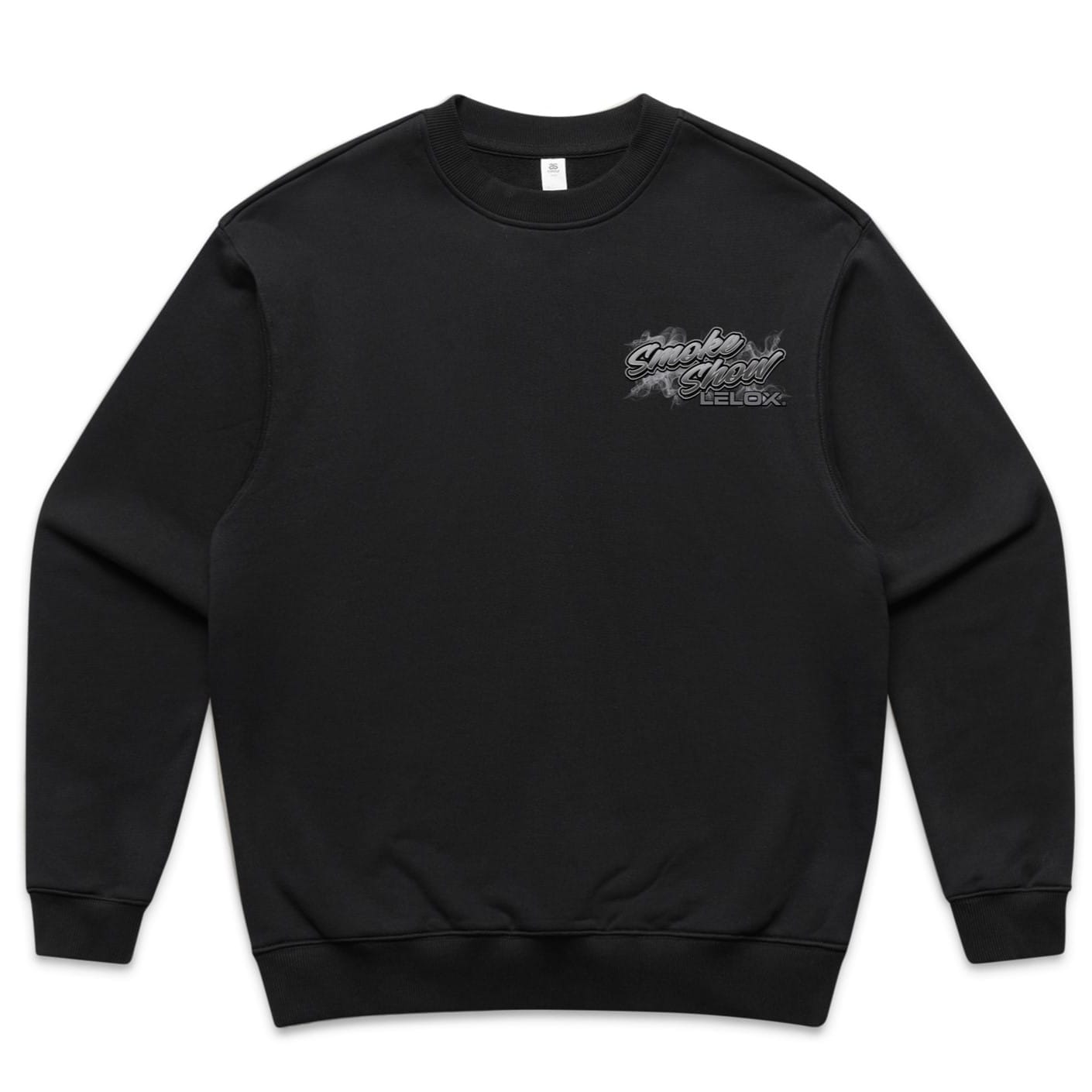 The front features the classic LELOX lettering paired with the smokeshow font, giving the crewneck jumper a sharp, standout look.